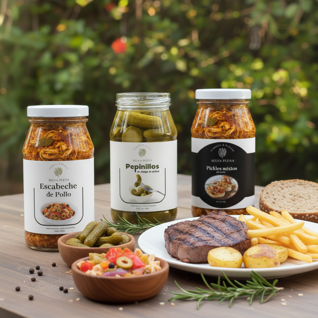 Tres clรกsicos: escabeche, pickles y pepinillos Cada frasco de peso neto 450 g, listos para cuando quieras.